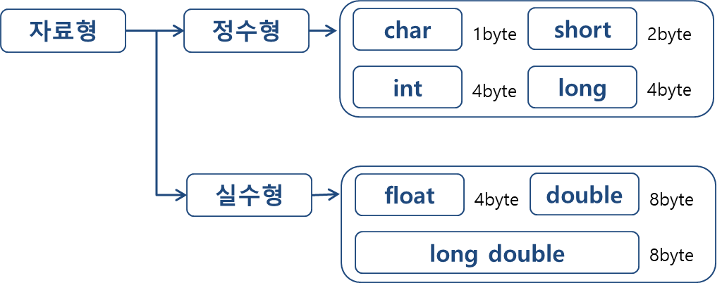 - long: 4바이트, -2,147,483,648 ~ 2,147,483,647