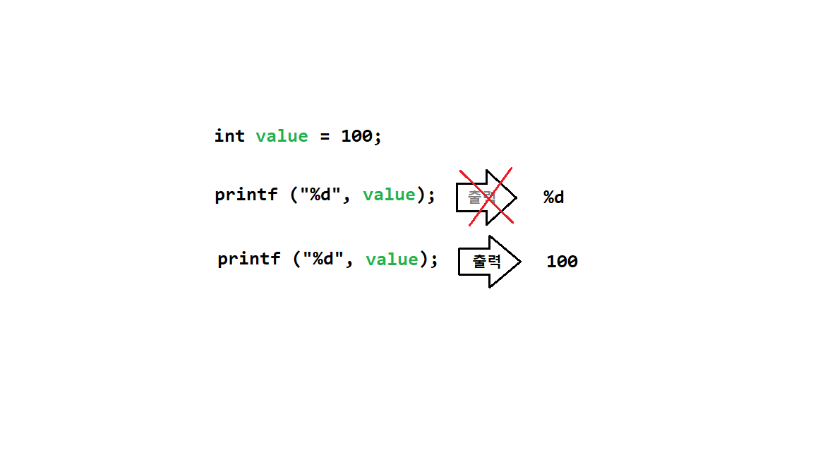 출력하고자 하는 변수의 출력 형태를 지정한다.