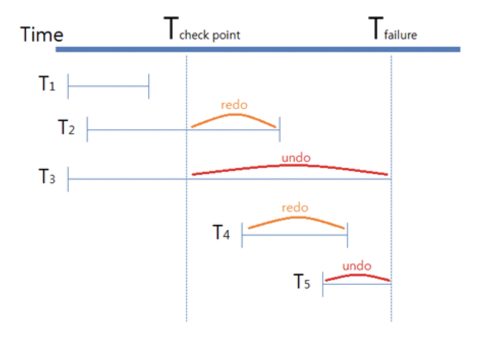 장애 시 디스크에 저장된 로그를 분석하여 트랜잭션의 시작(Start)은 있지만, 완료(Commit) 기록이 없는 트랜잭션들이 작업한 변경 내용을 모두 취소하는 기법입니다. 데이터베이스에서 장애가 발생하면, 로그에는 갱신 작업의 역순으로 기록되어 있으므로 이를 통해 변경된 데이터를 이전 값으로 복원합니다.