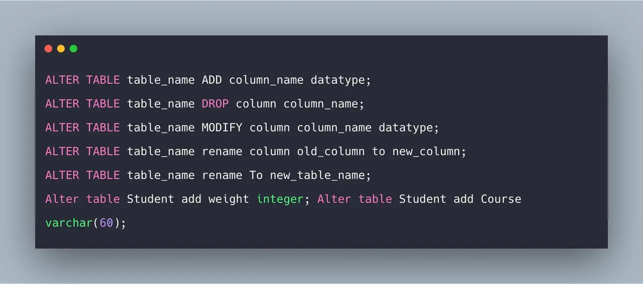ALTER TABLE 문을 사용하여 테이블의 속성의 데이터 타입을 변경하거나 NULL 또는 NOT NULL 제약 조건을 수정할 수 있습니다.